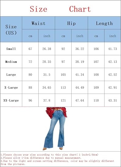 - Versatile and stylish: These Women's High Waisted Bell Bottom Jeans are not only comfortable and trendy but also incredibly versatile. They can be easily dressed up or down, making them suitable for a variety of occasions. Pair them with a tucked-in blouse and heels for a chic and sophisticated look, or dress them down with a graphic tee and sneakers for a casual and relaxed outfit.