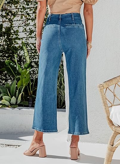 - The unique design of wide-leg jeans: High waisted breasted jean makes your waist smaller, and loose, straight legged pants make you more comfortable.
