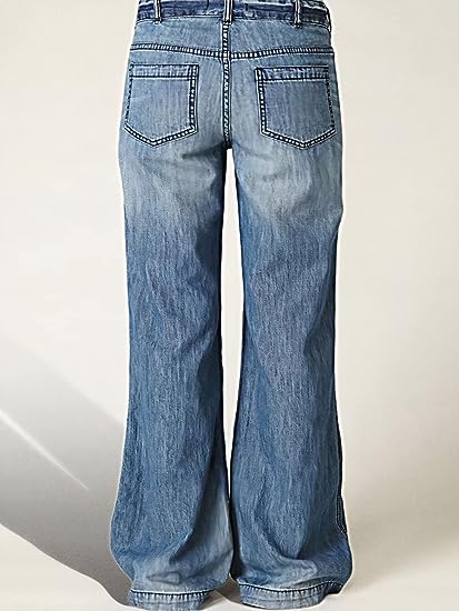 - Features: Low rise, button detail, flare leg, versatile. The low-waist design provides a comfortable fit, while the wide-leg style gives you a trendy and chic look. The pocket detail adds a touch of sophistication, making these jeans suitable for both casual and formal occasions.