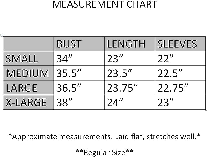 - sizes: Please see description below for garment measurements.